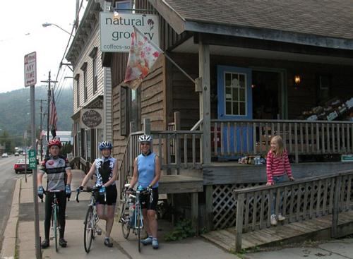Then factor in a great little gourmet/natural foods store (that would be us) to keep you fueled, and Cinder Track Bicycles, a cycle & repair shop in nearby Livingston Manor, to keep your ride going strong and provide whatever you may have forgotten to bring. Or, heck, make their day and forget some stuff on purpose. The bike shop team leads rides most summer and fall weekends. There are B&Bs in every little town, and plenty of campgrounds, both private and New York State-run, if you like roughing it. Want details? Check Cinder Track's site and/or e-mail us.